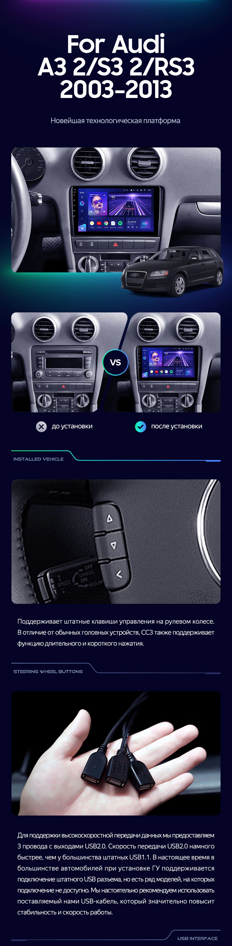 Штатная магнитола Teyes CC3 2K 4/32 Audi A3 2 8P (2003-2013) - купить всего за 39 800 руб. в интернет-магазине в Йошкар-Оле Teyes.com.ru. ✓ Самый лучший выбор мультимедиа ✓ Лучшая замена штатному ГУ ✓ Тел. +7 (800) 775-31-74