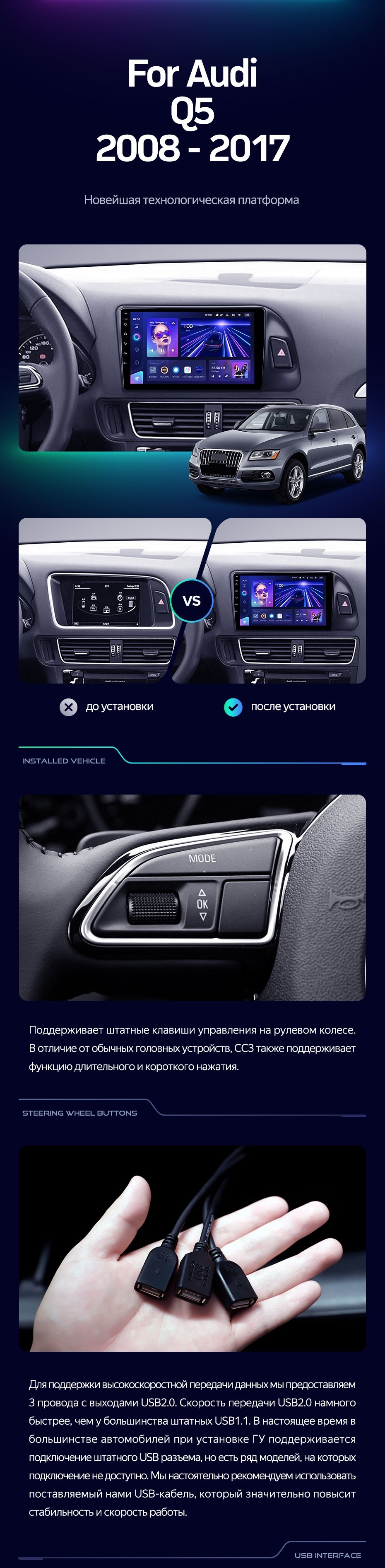 Штатная магнитола Teyes CC3 2K 360 6/128 Audi Q5 8R (2008-2017) Тип-A (13") - купить всего за 54 040 руб. в интернет-магазине в Йошкар-Оле Teyes.com.ru. ✓ Самый лучший выбор мультимедиа ✓ Лучшая замена штатному ГУ ✓ Тел. +7 (800) 775-31-74
