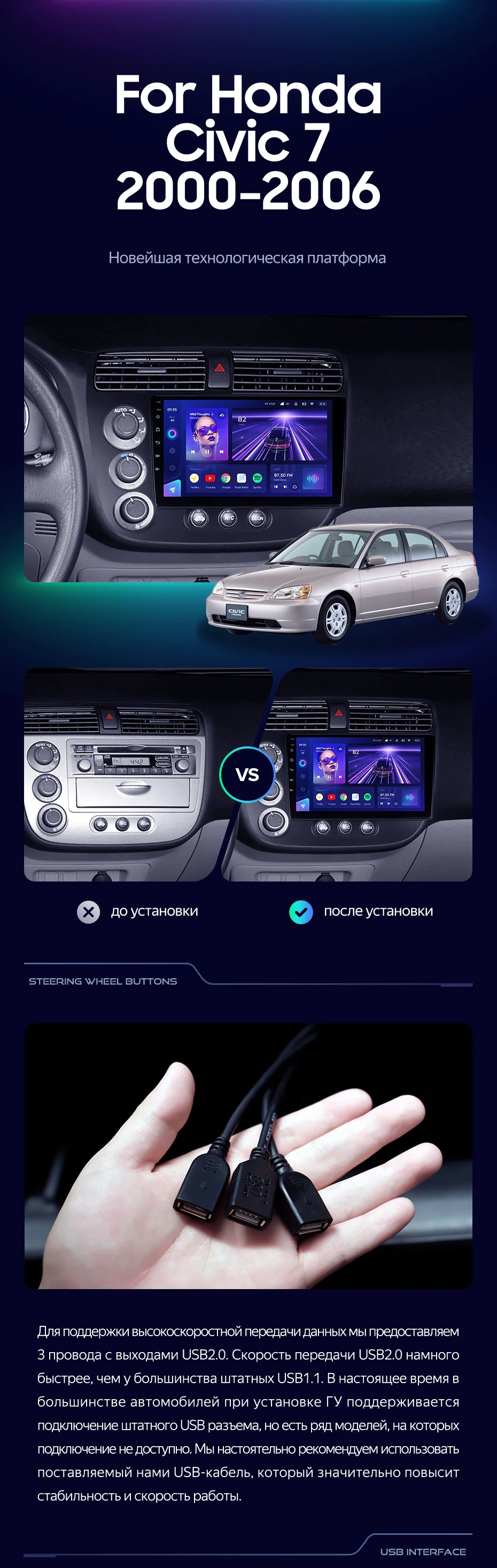 Штатная магнитола Teyes CC3 2K 360 6/128 Honda Civic 7 (2000-2006) F1 - купить всего за 54 900 руб. в интернет-магазине в Йошкар-Оле Teyes.com.ru. ✓ Самый лучший выбор мультимедиа ✓ Лучшая замена штатному ГУ ✓ Тел. +7 (800) 775-31-74