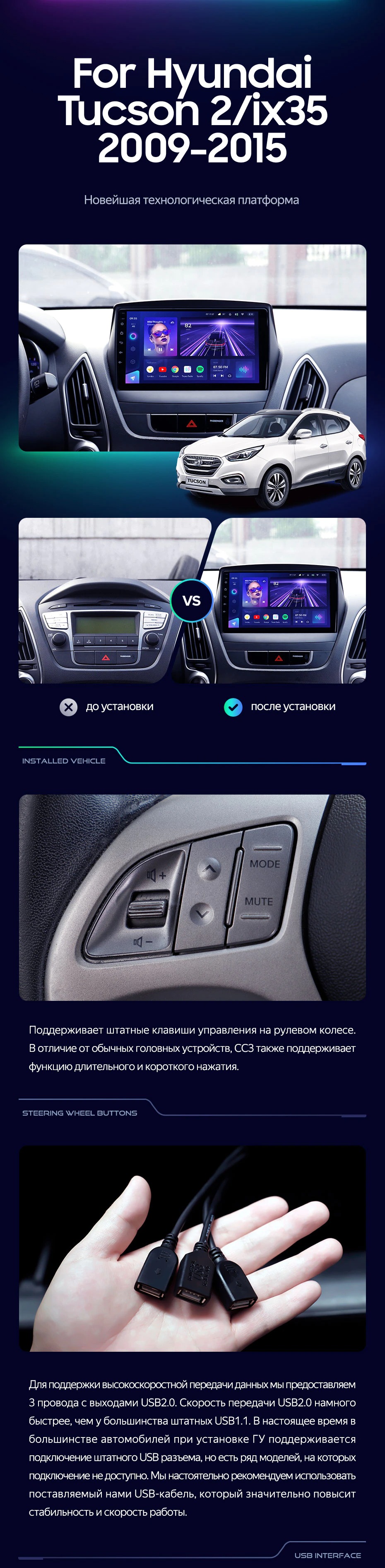 Штатная магнитола Teyes CC3 2K 360 6/128 Hyundai ix35 (2009-2015) (Tucson 2) Тип-AB - купить всего за 54 370 руб. в интернет-магазине в Йошкар-Оле Teyes.com.ru. ✓ Самый лучший выбор мультимедиа ✓ Лучшая замена штатному ГУ ✓ Тел. +7 (800) 775-31-74