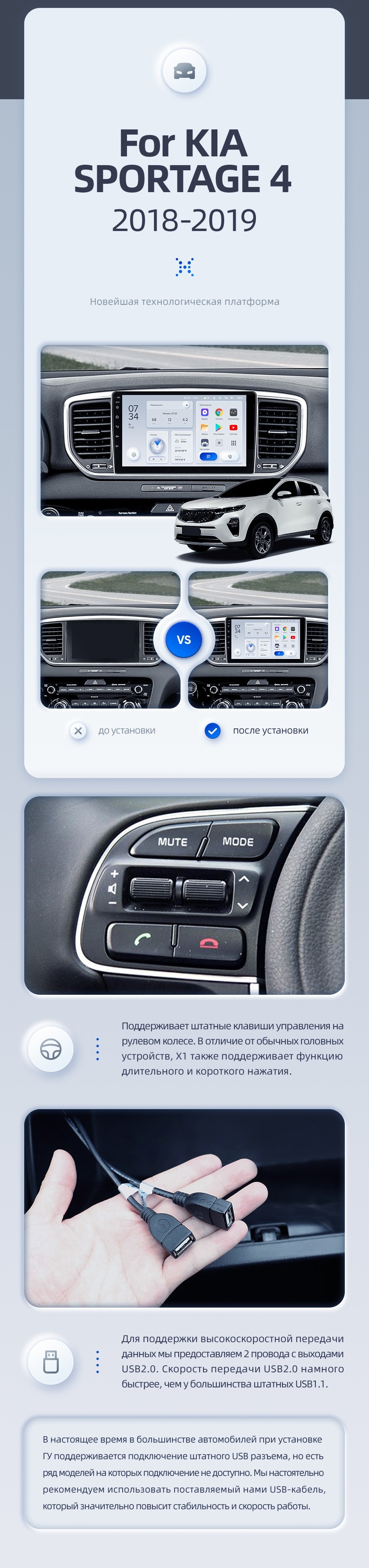 - Удобное и практичное управление голосом с возможностью реализовать 30 команд, отданных русским языком. Это обеспечивает управление основными штатными системами без отвлечения от управления авто. Среди доступных функций ; музыка, карты, навигация и телефонный разговор, возможность отслеживания состояния транспорта при его передвижении.