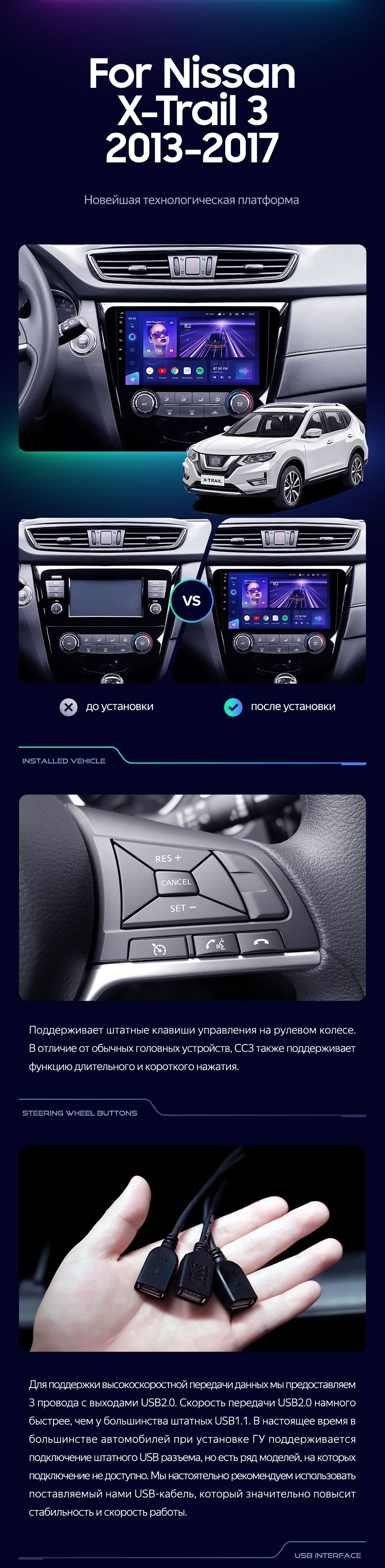 - Удобное и практичное управление голосом с возможностью реализовать 30 команд, отданных русским языком. Это обеспечивает управление основными штатными системами без отвлечения от управления авто. Среди доступных функций ; музыка, карты, навигация и телефонный разговор, возможность отслеживания состояния транспорта при его передвижении.