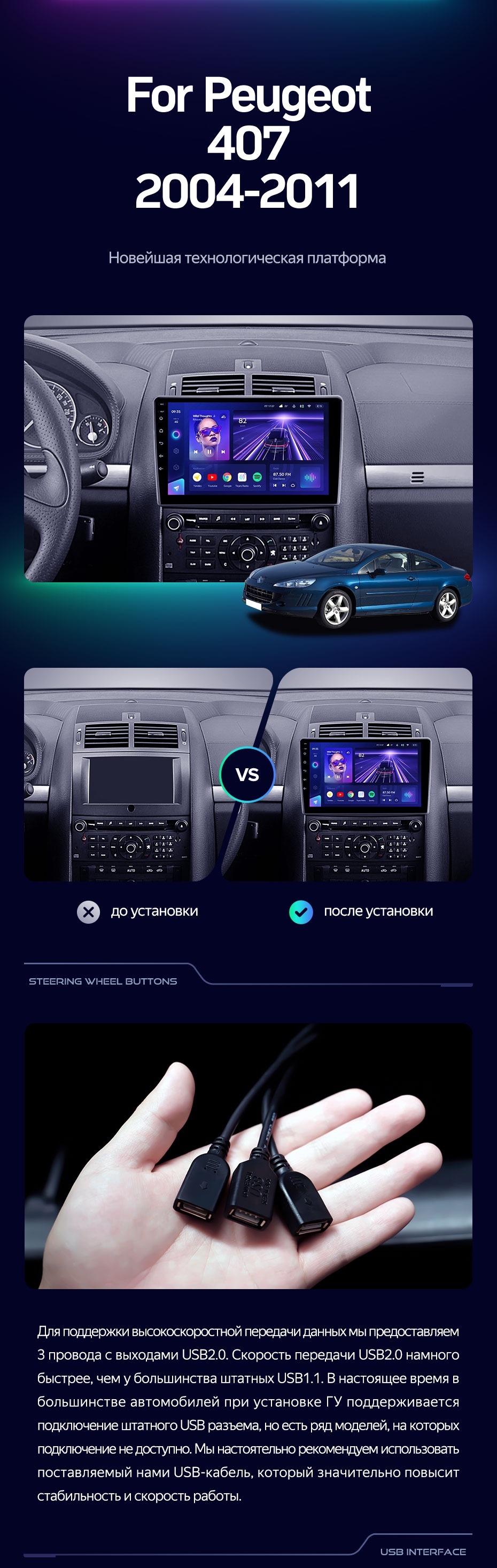 Штатная магнитола Teyes CC3 2K 4/64 Peugeot 407 (2004-2011) F1 - купить всего за 45 900 руб. в интернет-магазине в Йошкар-Оле Teyes.com.ru. ✓ Самый лучший выбор мультимедиа ✓ Лучшая замена штатному ГУ ✓ Тел. +7 (800) 775-31-74