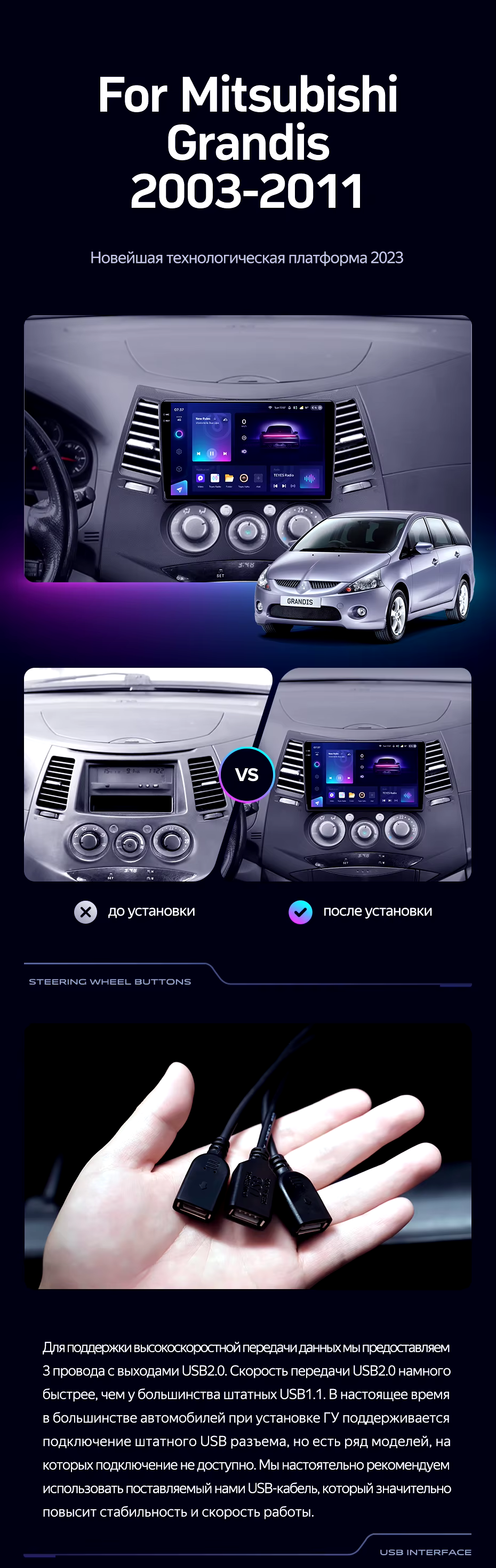 Штатная магнитола Teyes CC3 2K 6/128 Mitsubishi Grandis 1 (2003-2011) F2 - купить всего за 47 200 руб. в интернет-магазине в Йошкар-Оле Teyes.com.ru. ✓ Самый лучший выбор мультимедиа ✓ Лучшая замена штатному ГУ ✓ Тел. +7 (800) 775-31-74