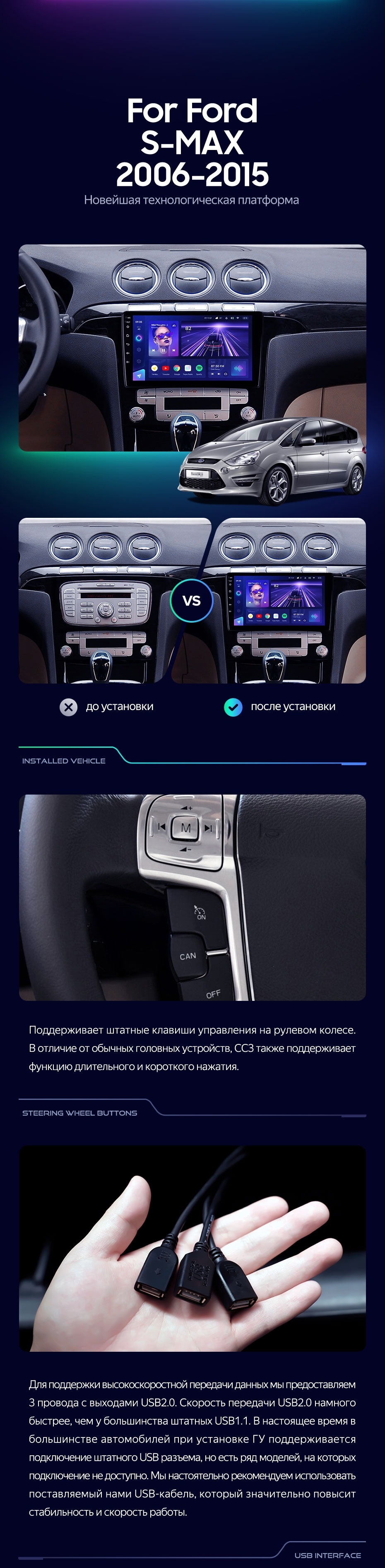 Штатная магнитола Teyes CC3 4/32 Ford S-MAX (2006-2015) F2 - купить всего за 33 230 руб. в интернет-магазине в Йошкар-Оле Teyes.com.ru. ✓ Самый лучший выбор мультимедиа ✓ Лучшая замена штатному ГУ ✓ Тел. +7 (800) 775-31-74