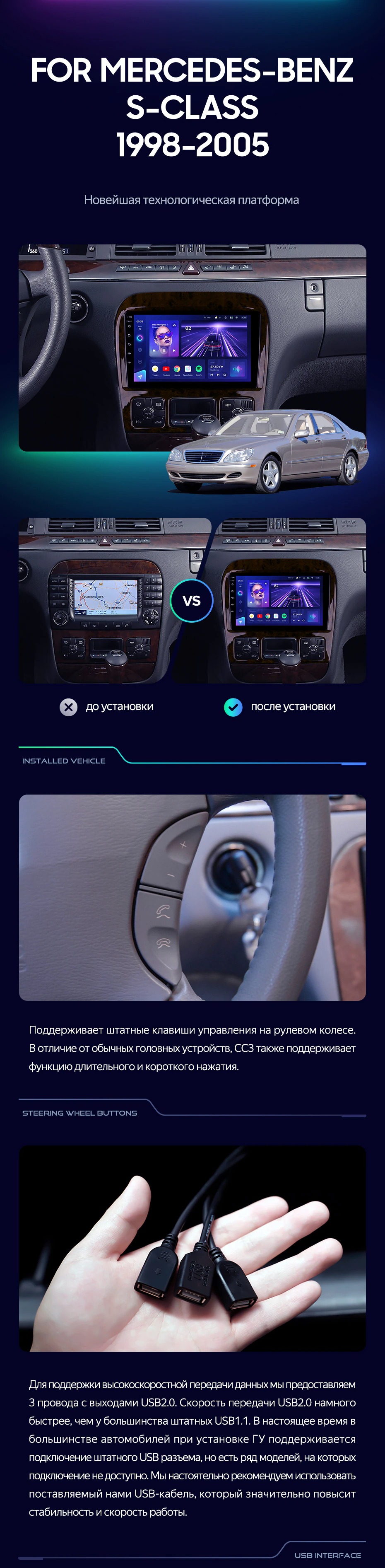 Штатная магнитола Teyes CC3 4/32 Mercedes-Benz S-Class W220 VV220 (1998-2005) - купить всего за 36 330 руб. в интернет-магазине в Йошкар-Оле Teyes.com.ru. ✓ Самый лучший выбор мультимедиа ✓ Лучшая замена штатному ГУ ✓ Тел. +7 (800) 775-31-74
