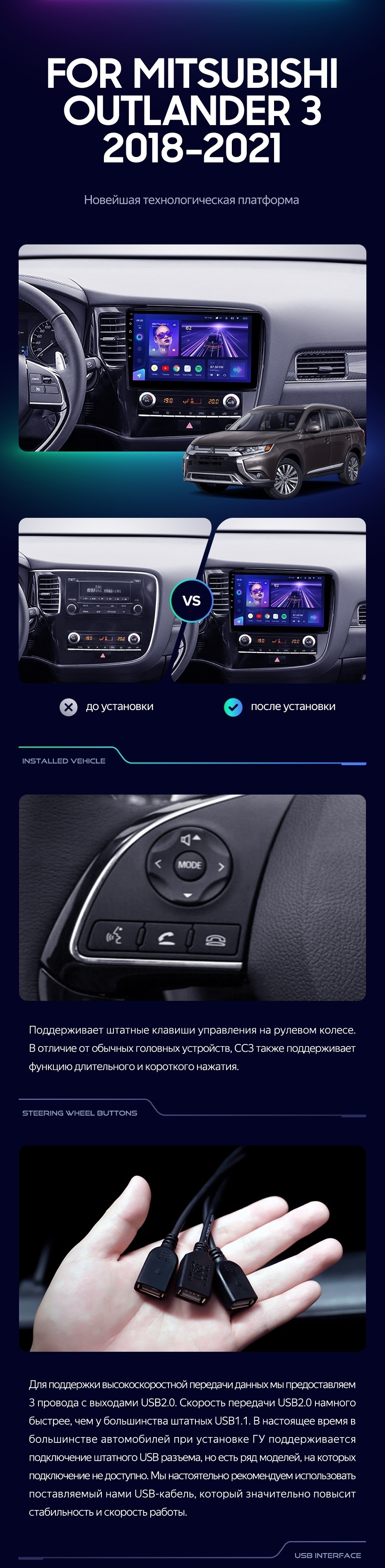 Штатная магнитола Teyes CC3 4/32 Mitsubishi Outlander 3 (2018-2021) - купить всего за 33 830 руб. в интернет-магазине в Йошкар-Оле Teyes.com.ru. ✓ Самый лучший выбор мультимедиа ✓ Лучшая замена штатному ГУ ✓ Тел. +7 (800) 775-31-74