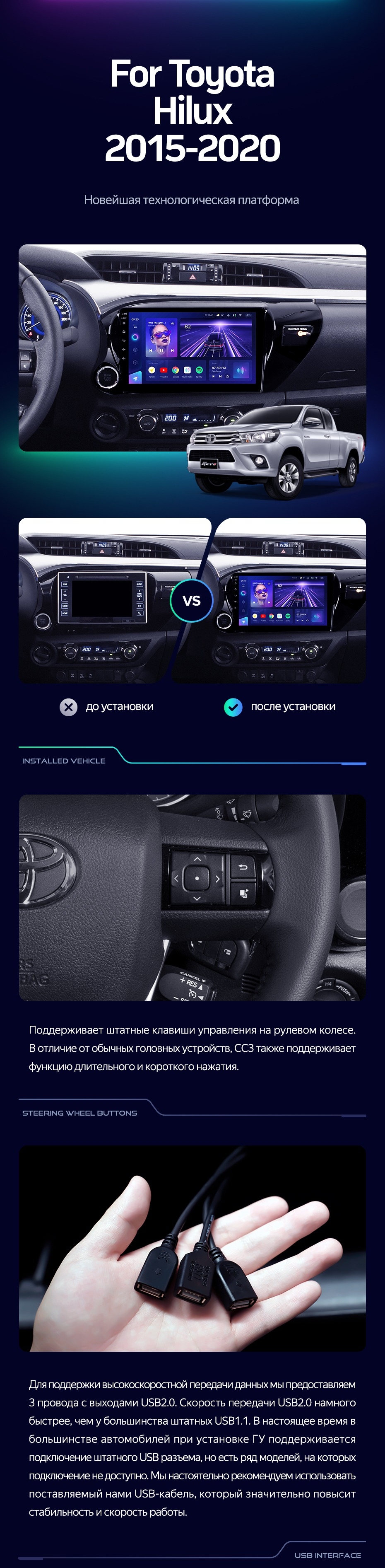 Штатная магнитола Teyes CC3 4/32 Toyota Hilux Pick Up (2015-2020) - купить всего за 33 550 руб. в интернет-магазине в Йошкар-Оле Teyes.com.ru. ✓ Самый лучший выбор мультимедиа ✓ Лучшая замена штатному ГУ ✓ Тел. +7 (800) 775-31-74