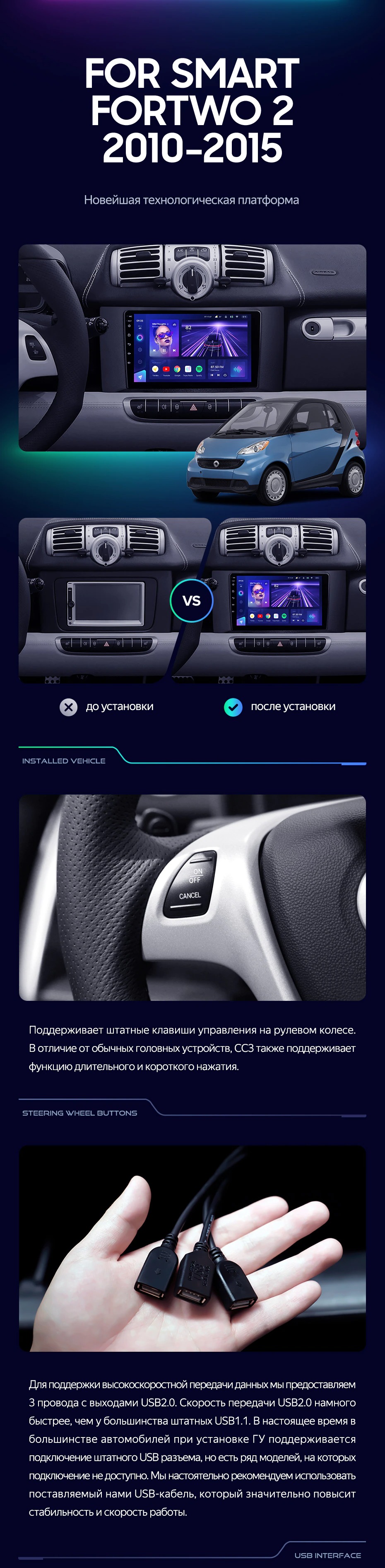 Покупал магнитолу teyes cc3 3/32gb для smart fortwo 2007 года (рамка была своя). Магнитола идеально подошла, все функции работают, есть apple carplay. Данный магазин рекомендую, продавцы все подсказали, рассказали, дали необходимые провода.