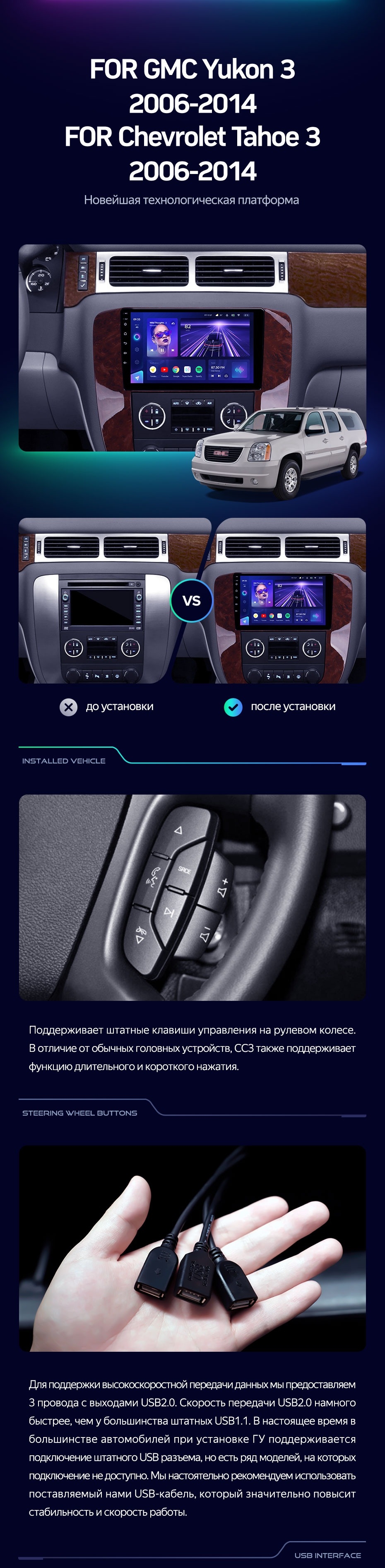 Штатная магнитола Teyes CC3 6/128 Chevrolet Tahoe (2006-2014) - купить всего за 46 200 руб. в интернет-магазине в Йошкар-Оле Teyes.com.ru. ✓ Самый лучший выбор мультимедиа ✓ Лучшая замена штатному ГУ ✓ Тел. +7 (800) 775-31-74