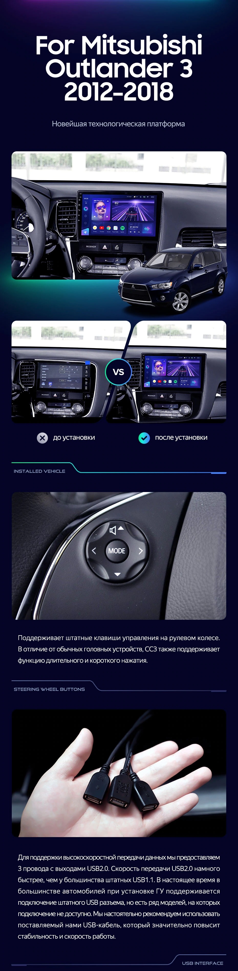 Штатная магнитола Teyes CC3L 4/32 Mitsubishi Outlander 3 (2012-2018) Тип-A - купить всего за 28 100 руб. в интернет-магазине в Йошкар-Оле Teyes.com.ru. ✓ Самый лучший выбор мультимедиа ✓ Лучшая замена штатному ГУ ✓ Тел. +7 (800) 775-31-74