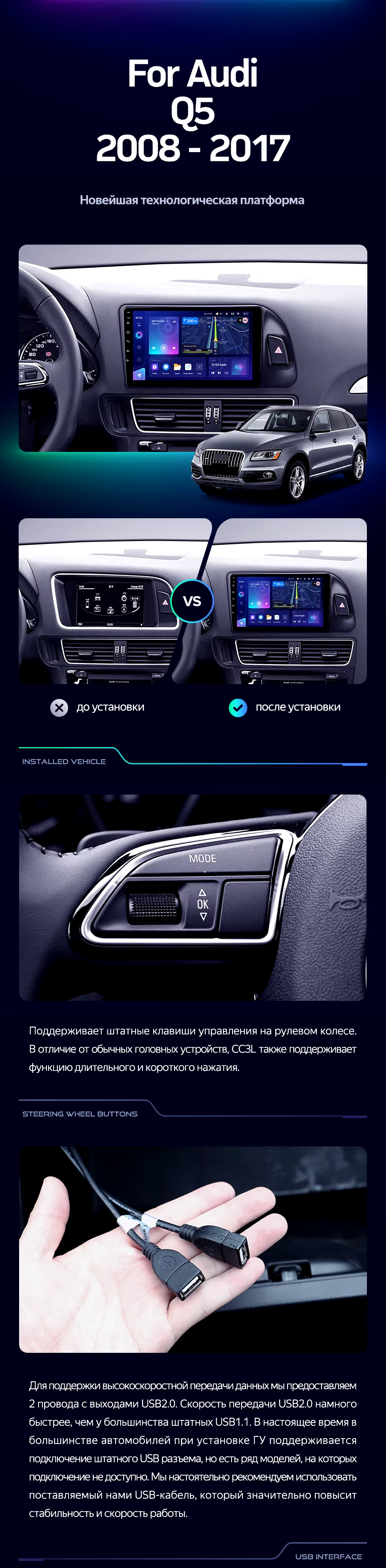 Штатная магнитола Teyes CC3L 4/64 Audi Q5 8R (2008-2017) Тип-A - купить всего за 33 750 руб. в интернет-магазине в Йошкар-Оле Teyes.com.ru. ✓ Самый лучший выбор мультимедиа ✓ Лучшая замена штатному ГУ ✓ Тел. +7 (800) 775-31-74