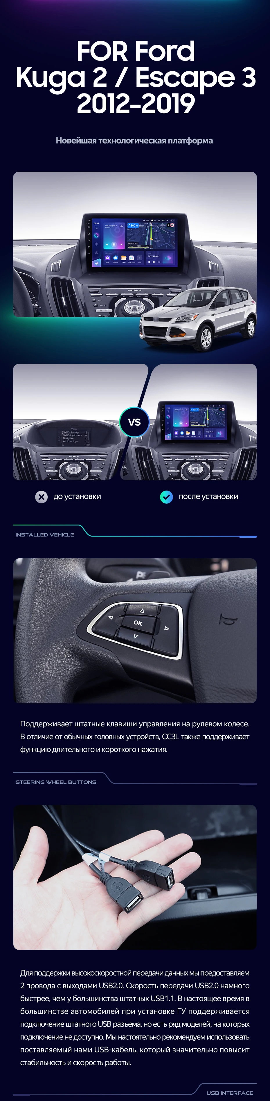 Штатная магнитола Teyes CC3L 4/64 Ford Escape 3 (2012-2019) Тип-A - купить всего за 31 500 руб. в интернет-магазине в Йошкар-Оле Teyes.com.ru. ✓ Самый лучший выбор мультимедиа ✓ Лучшая замена штатному ГУ ✓ Тел. +7 (800) 775-31-74