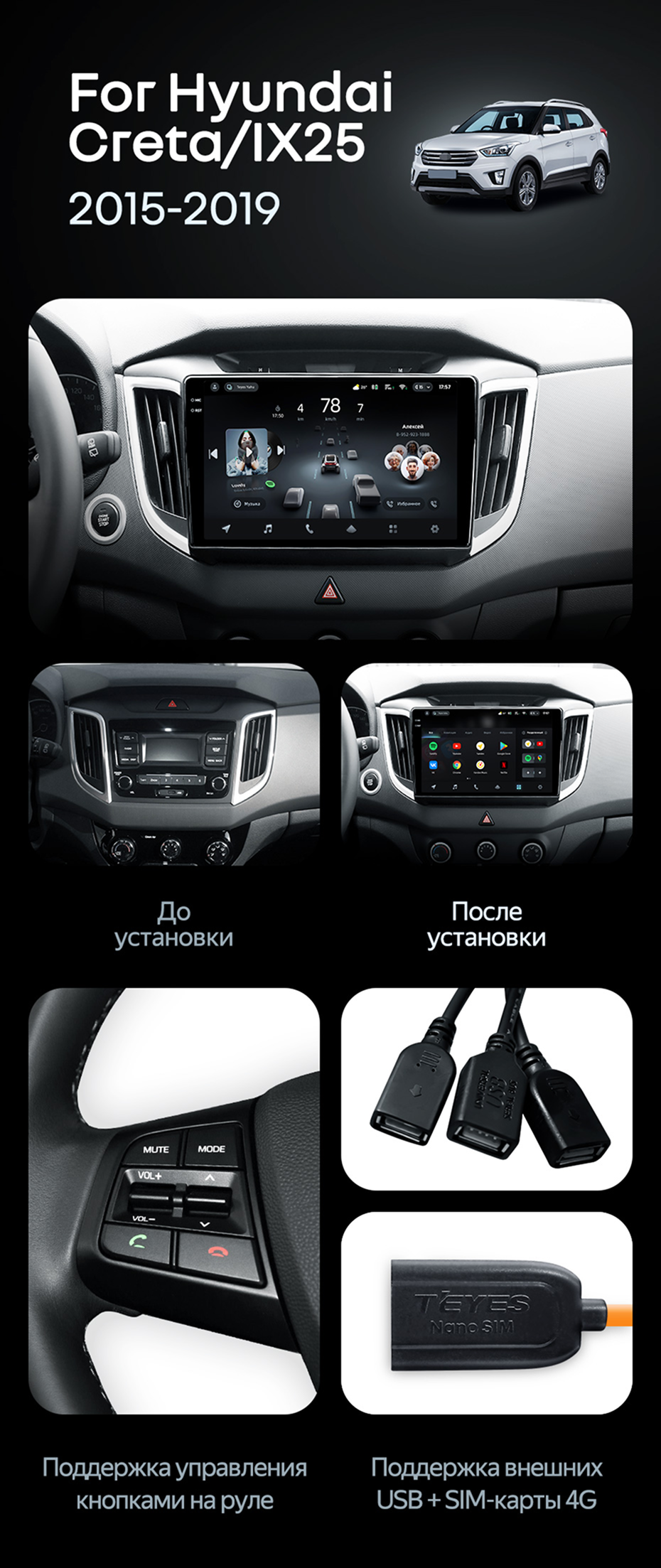 Штатная магнитола Teyes CC4 6/64 Hyundai Creta 1 (2015-2019) с кнопками - купить всего за 48 900 руб. в интернет-магазине в Йошкар-Оле Teyes.com.ru. ✓ Самый лучший выбор мультимедиа ✓ Лучшая замена штатному ГУ ✓ Тел. +7 (800) 775-31-74