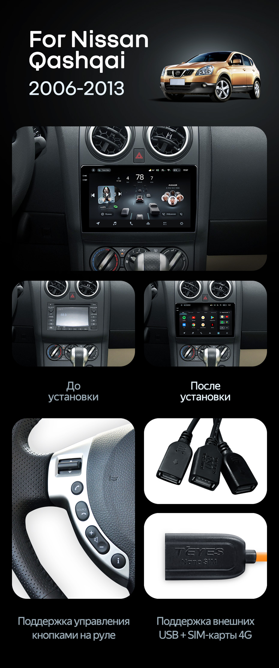 Штатная магнитола Teyes CC4 8/128 Nissan Qashqai 1 J10 (2006-2013) F1 - купить всего за 52 700 руб. в интернет-магазине в Йошкар-Оле Teyes.com.ru. ✓ Самый лучший выбор мультимедиа ✓ Лучшая замена штатному ГУ ✓ Тел. +7 (800) 775-31-74