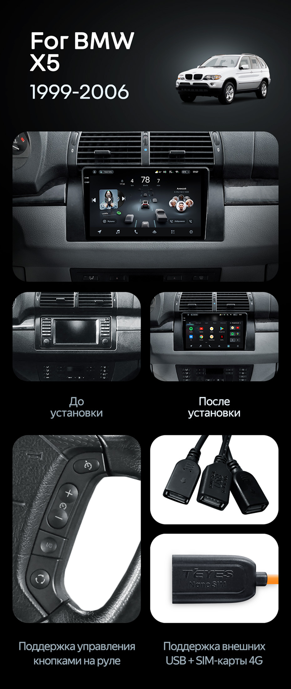 Штатная магнитола Teyes CC4 Pro 12/256 BMW X5 E39 E53 (1999-2006) - купить всего за 69 380 руб. в интернет-магазине в Йошкар-Оле Teyes.com.ru. ✓ Самый лучший выбор мультимедиа ✓ Лучшая замена штатному ГУ ✓ Тел. +7 (800) 775-31-74