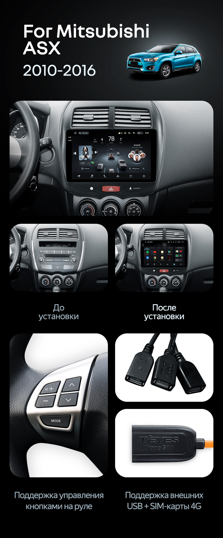 Штатная магнитола Teyes CC4 Pro 12/256 Mitsubishi ASX 1 (2010-2016) Тип-B - купить всего за 68 460 руб. в интернет-магазине в Йошкар-Оле Teyes.com.ru. ✓ Самый лучший выбор мультимедиа ✓ Лучшая замена штатному ГУ ✓ Тел. +7 (800) 775-31-74