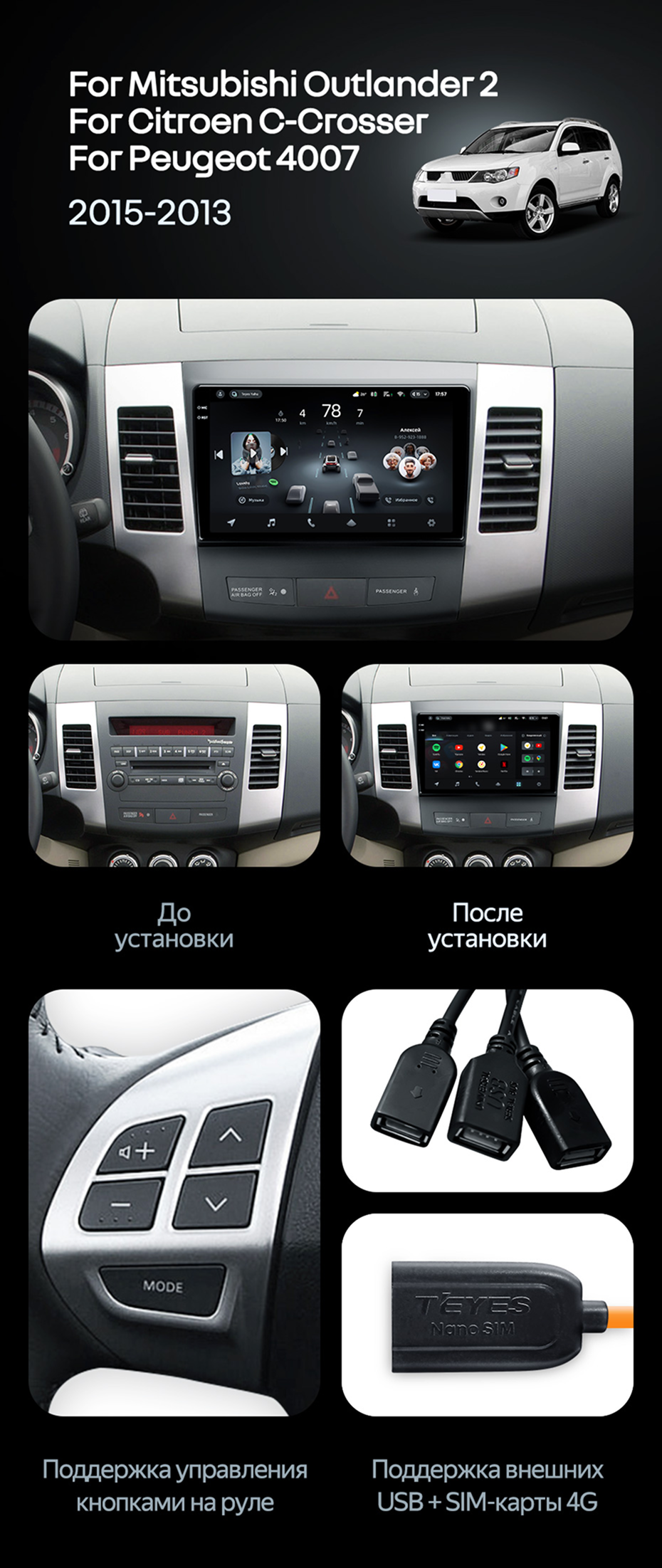 Штатная магнитола Teyes CC4 Pro 12/256 Peugeot 4007 (2007-2012) Тип-B - купить всего за 69 510 руб. в интернет-магазине в Йошкар-Оле Teyes.com.ru. ✓ Самый лучший выбор мультимедиа ✓ Лучшая замена штатному ГУ ✓ Тел. +7 (800) 775-31-74