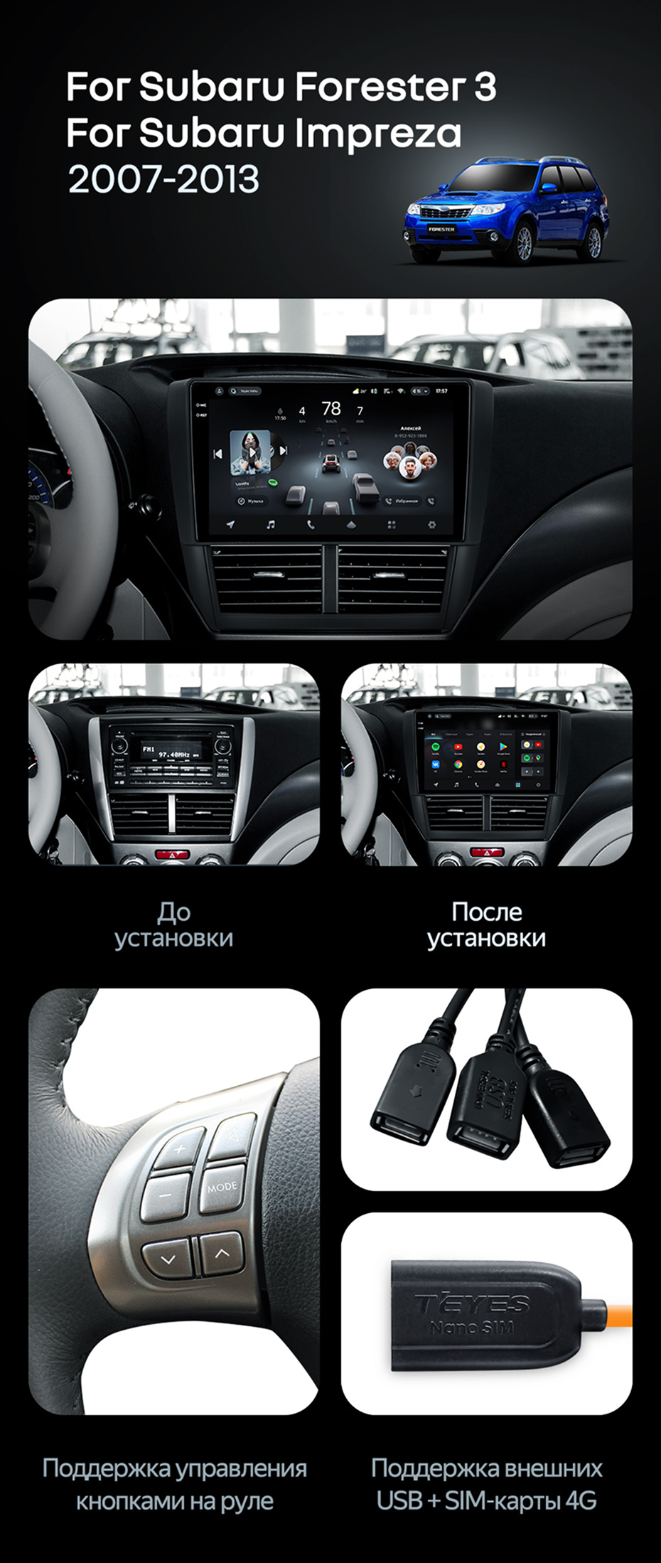 Штатная магнитола Teyes CC4 Pro 12/256 Subaru Forester 3 SH (2007-2013) - купить всего за 68 080 руб. в интернет-магазине в Йошкар-Оле Teyes.com.ru. ✓ Самый лучший выбор мультимедиа ✓ Лучшая замена штатному ГУ ✓ Тел. +7 (800) 775-31-74