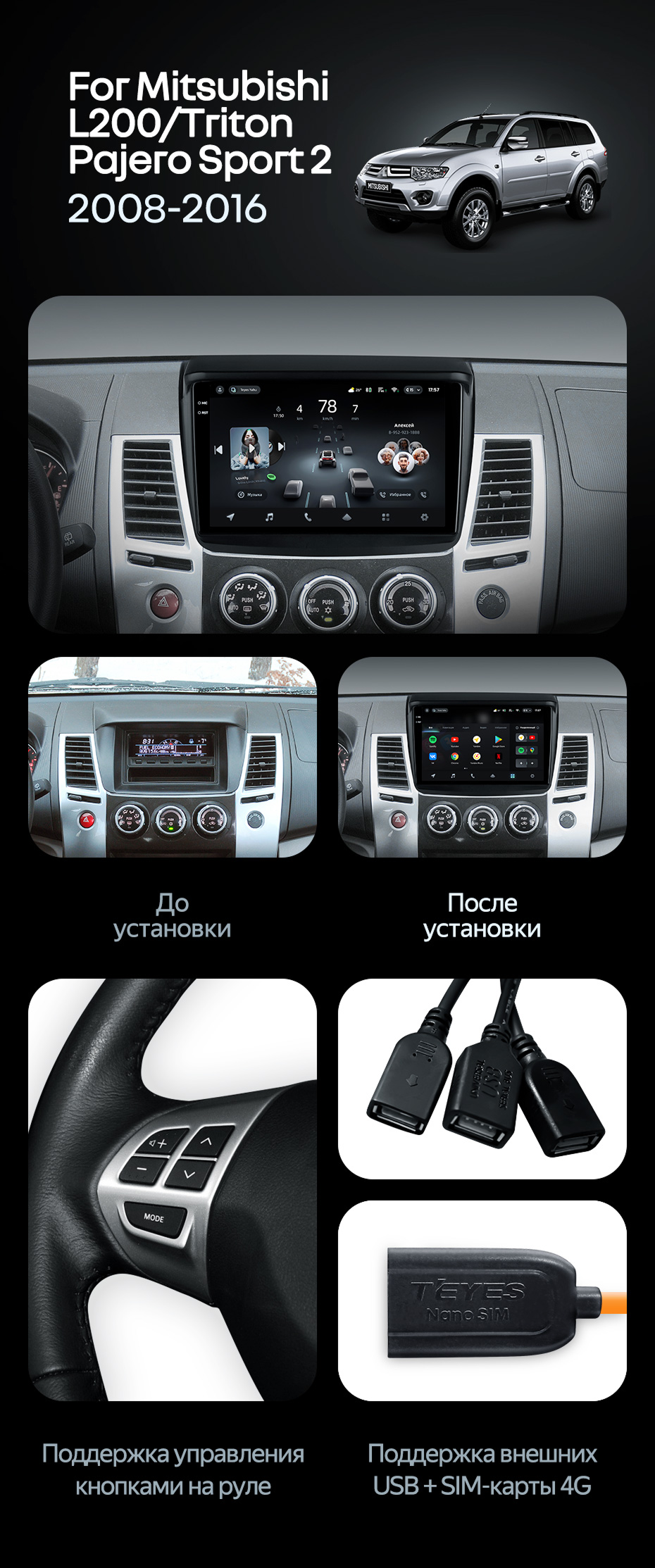 Штатная магнитола Teyes CC4 Pro 360 8/128 Mitsubishi L200 (2008-2016) - купить всего за 78 740 руб. в интернет-магазине в Йошкар-Оле Teyes.com.ru. ✓ Самый лучший выбор мультимедиа ✓ Лучшая замена штатному ГУ ✓ Тел. +7 (800) 775-31-74