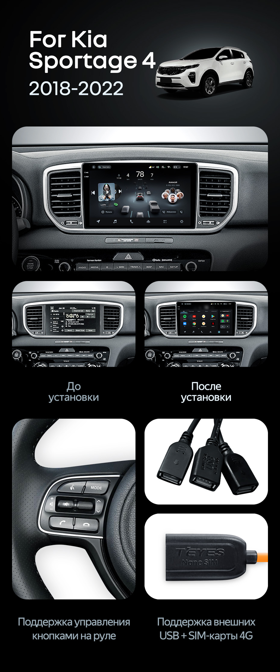 Штатная магнитола Teyes CC4 Pro 8/128 Kia Sportage 4 QL (2018-2022) Тип-A - купить всего за 57 780 руб. в интернет-магазине в Йошкар-Оле Teyes.com.ru. ✓ Самый лучший выбор мультимедиа ✓ Лучшая замена штатному ГУ ✓ Тел. +7 (800) 775-31-74
