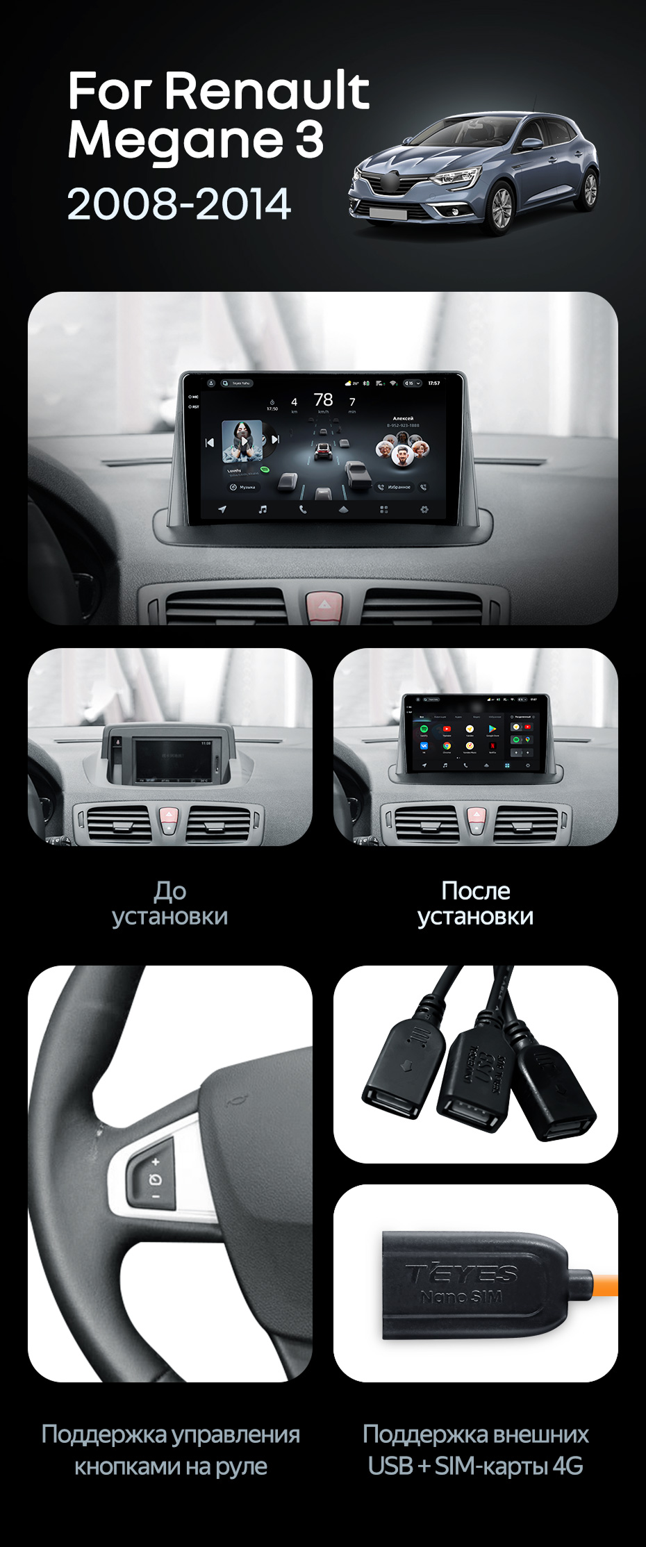 Штатная магнитола Teyes CC4 Pro 8/128 Renault Megane 3 (2008-2014) - купить всего за 59 800 руб. в интернет-магазине в Йошкар-Оле Teyes.com.ru. ✓ Самый лучший выбор мультимедиа ✓ Лучшая замена штатному ГУ ✓ Тел. +7 (800) 775-31-74