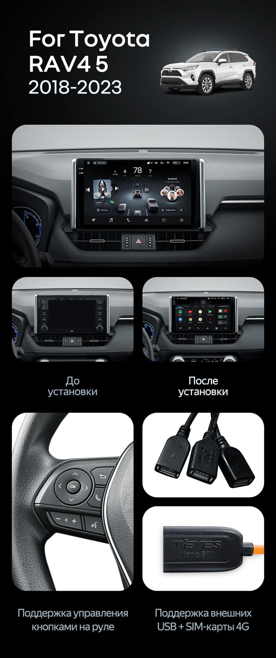 Штатная магнитола Teyes CC4 Pro 8/128 Toyota RAV4 XA50 (2018-2023) F1 - купить всего за 59 190 руб. в интернет-магазине в Йошкар-Оле Teyes.com.ru. ✓ Самый лучший выбор мультимедиа ✓ Лучшая замена штатному ГУ ✓ Тел. +7 (800) 775-31-74