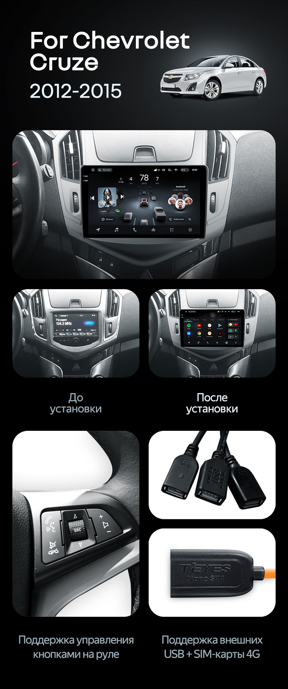 Штатная магнитола Teyes CC4L 6/64 Chevrolet Cruze J300 J308 (2012-2015) F1 - купить всего за 30 970 руб. в интернет-магазине в Йошкар-Оле Teyes.com.ru. ✓ Самый лучший выбор мультимедиа ✓ Лучшая замена штатному ГУ ✓ Тел. +7 (800) 775-31-74