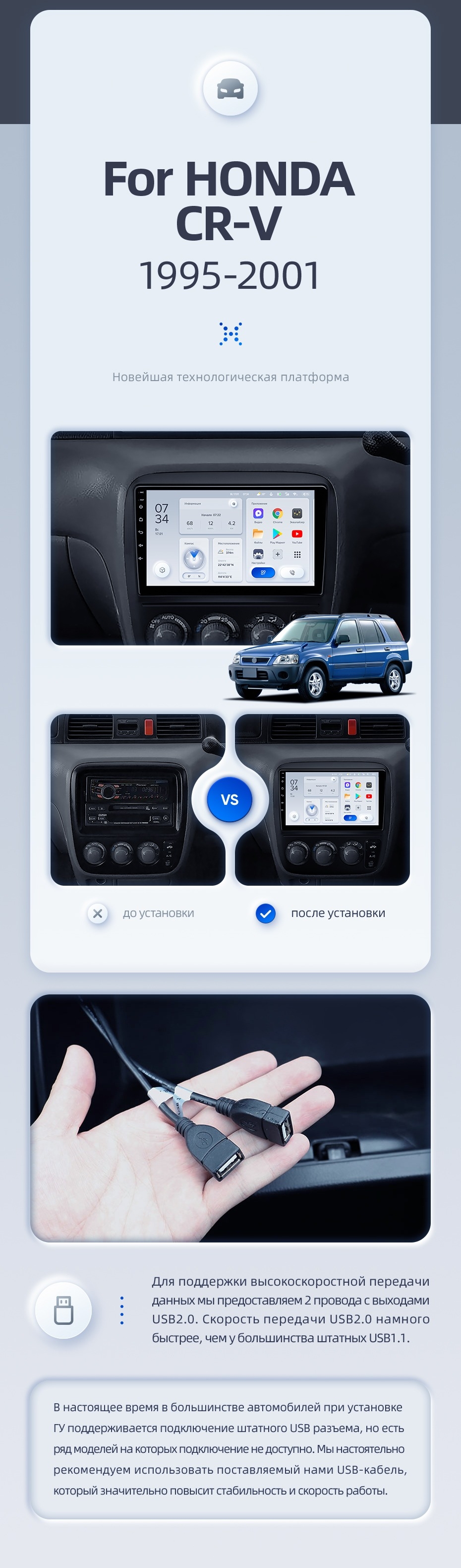 | USB | 3×USB 2.0 + USB 3.0 | Доп. аксессуары | Передняя/задняя AHD-камера, DVR-регистратор, TPMS, парковочный OBD, Type-C → HDMI |