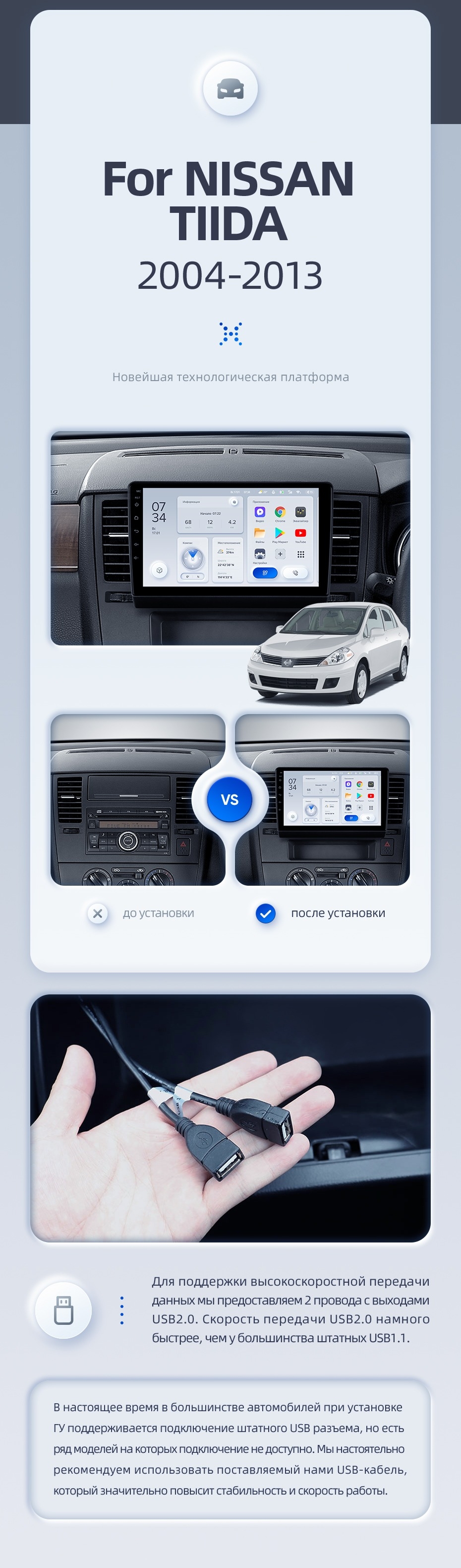 | USB | 3×USB 2.0 + USB 3.0 | Доп. аксессуары | Передняя/задняя AHD-камера, DVR-регистратор, TPMS, парковочный OBD, Type-C → HDMI |