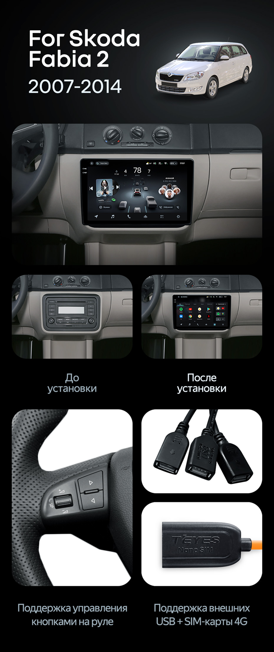 Штатная магнитола Teyes CC4L 6/64 Skoda Fabia 2 (2007-2014) - купить всего за 30 800 руб. в интернет-магазине в Йошкар-Оле Teyes.com.ru. ✓ Самый лучший выбор мультимедиа ✓ Лучшая замена штатному ГУ ✓ Тел. +7 (800) 775-31-74