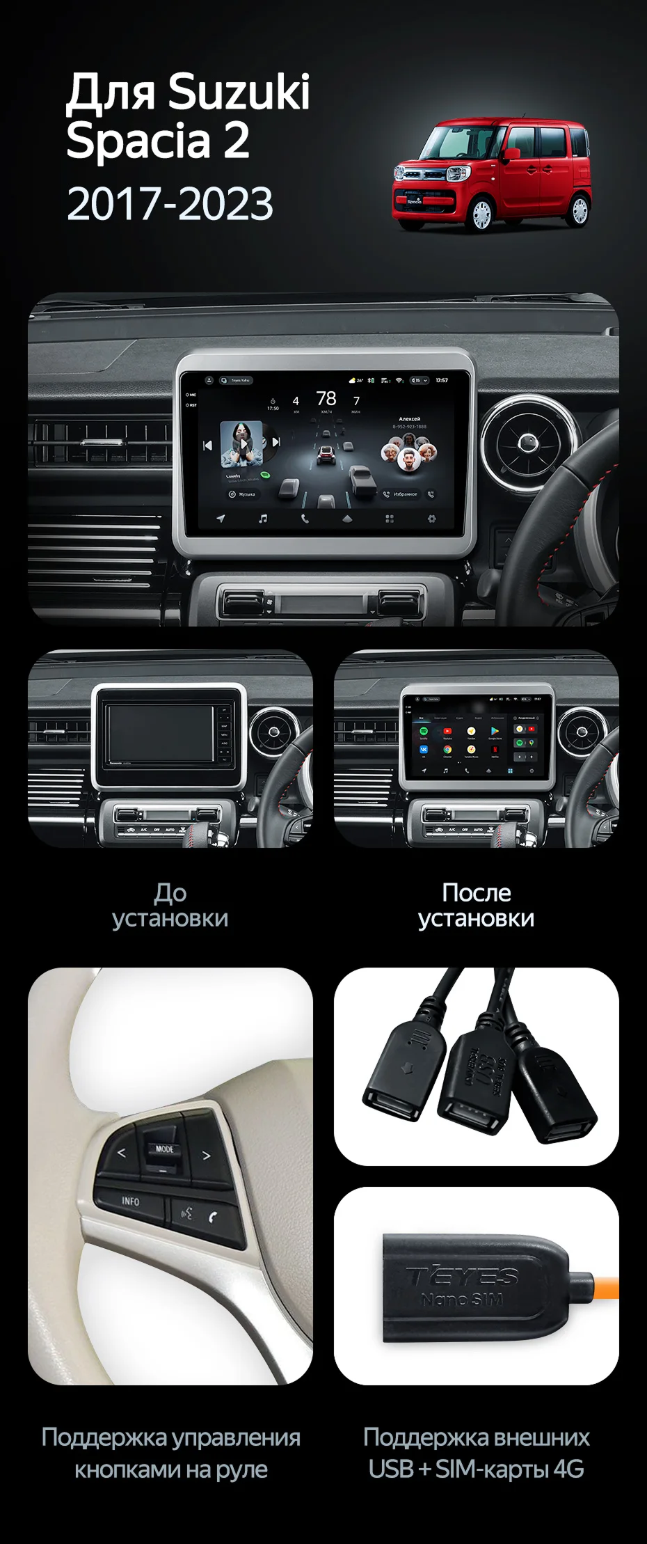 Штатная магнитола Teyes CC4L 6/64 Suzuki Spacia 2 (2017-2023) - купить всего за 30 700 руб. в интернет-магазине в Йошкар-Оле Teyes.com.ru. ✓ Самый лучший выбор мультимедиа ✓ Лучшая замена штатному ГУ ✓ Тел. +7 (800) 775-31-74