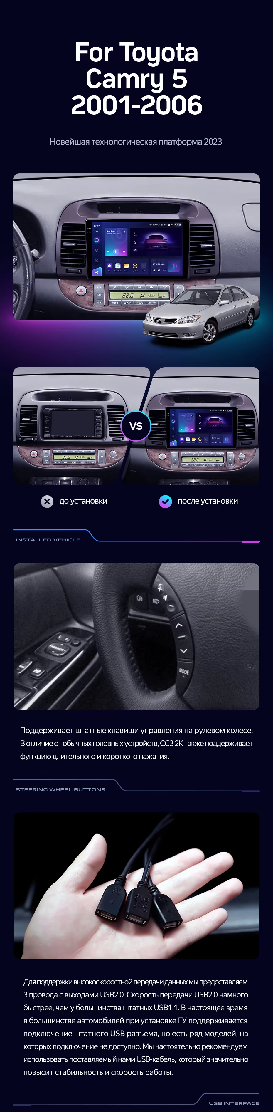 Штатная магнитола Teyes CC4L 6/64 Toyota Camry 5 XV 30 (2001-2006) Тип-B - купить всего за 30 700 руб. в интернет-магазине в Йошкар-Оле Teyes.com.ru. ✓ Самый лучший выбор мультимедиа ✓ Лучшая замена штатному ГУ ✓ Тел. +7 (800) 775-31-74
