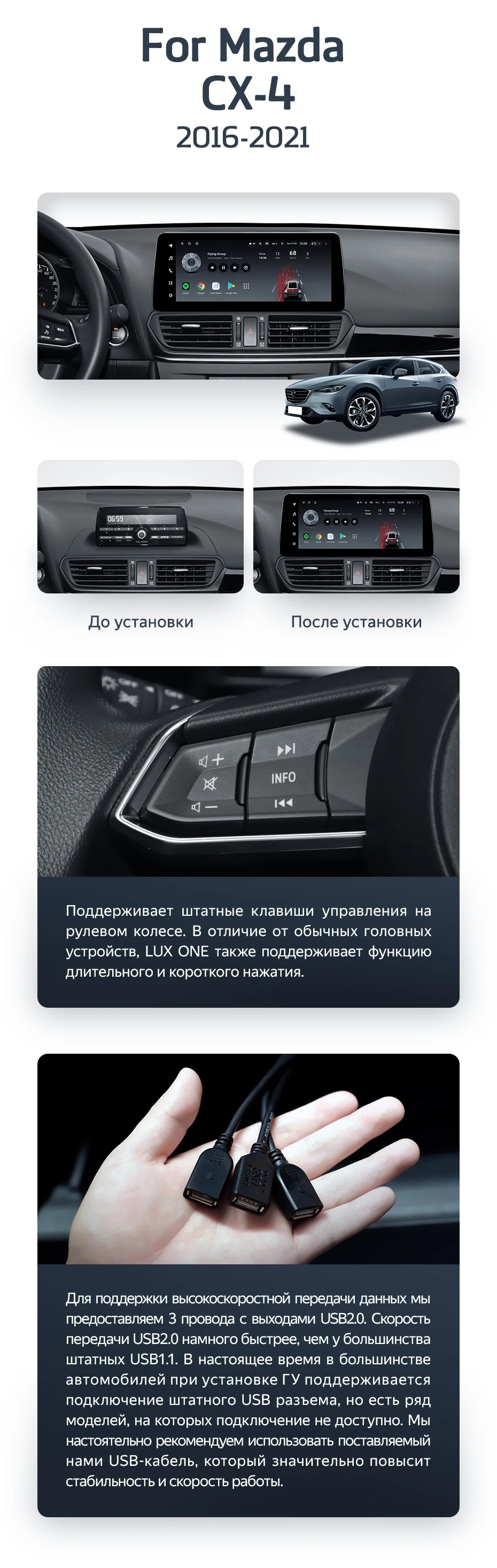 Штатная магнитола Teyes LUX ONE 360 6/128 Mazda CX-4 (2016-2021) Тип-B - купить всего за 63 200 руб. в интернет-магазине в Йошкар-Оле Teyes.com.ru. ✓ Самый лучший выбор мультимедиа ✓ Лучшая замена штатному ГУ ✓ Тел. +7 (800) 775-31-74