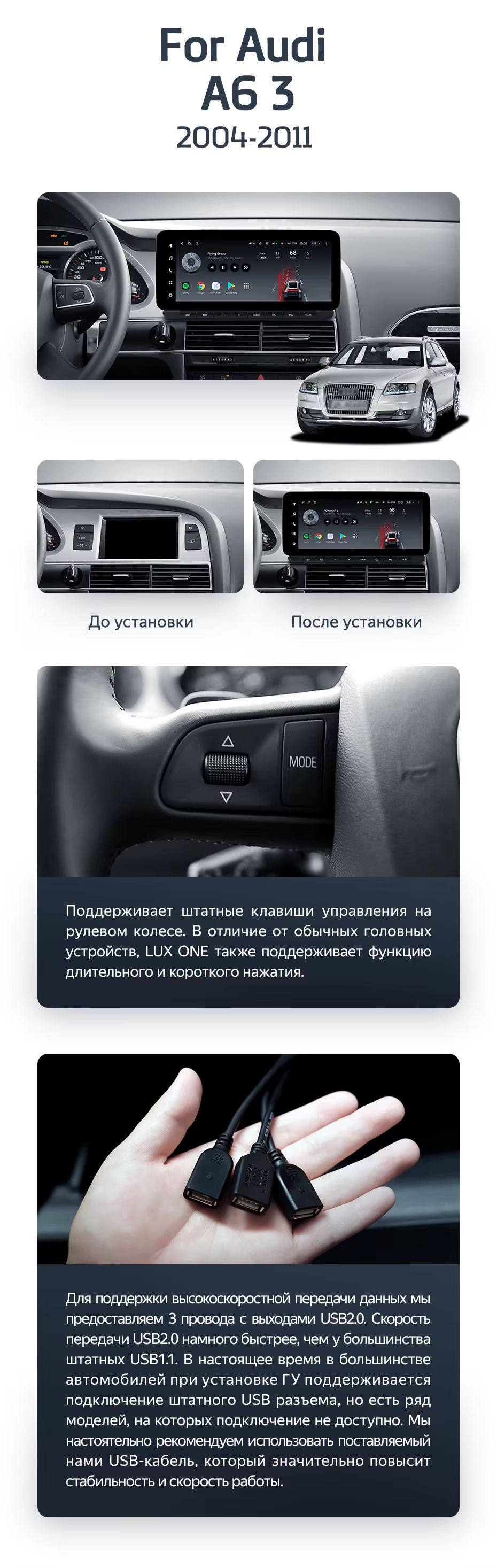 Штатная магнитола Teyes LUX ONE 4/64 Audi A6 3 C6 (2004-2011) - купить всего за 43 400 руб. в интернет-магазине в Йошкар-Оле Teyes.com.ru. ✓ Самый лучший выбор мультимедиа ✓ Лучшая замена штатному ГУ ✓ Тел. +7 (800) 775-31-74