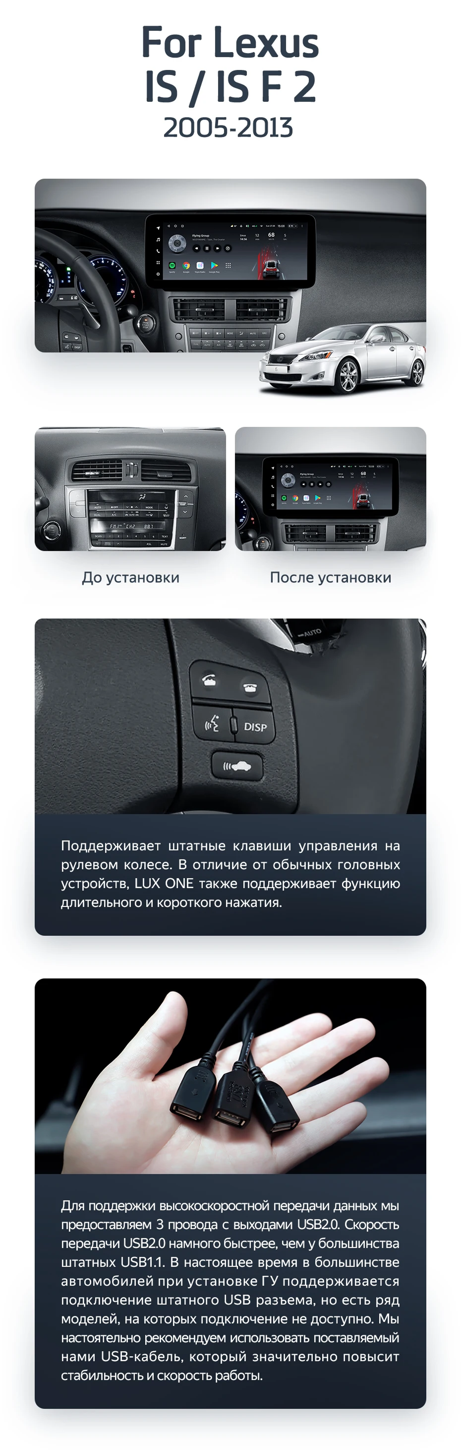 Штатная магнитола Teyes LUX ONE 4/64 Lexus IS F 200D 220D 250 250C 300 350 350C 2 XE20 (2005-2013) - купить всего за 48 230 руб. в интернет-магазине в Йошкар-Оле Teyes.com.ru. ✓ Самый лучший выбор мультимедиа ✓ Лучшая замена штатному ГУ ✓ Тел. +7 (800) 775-31-74