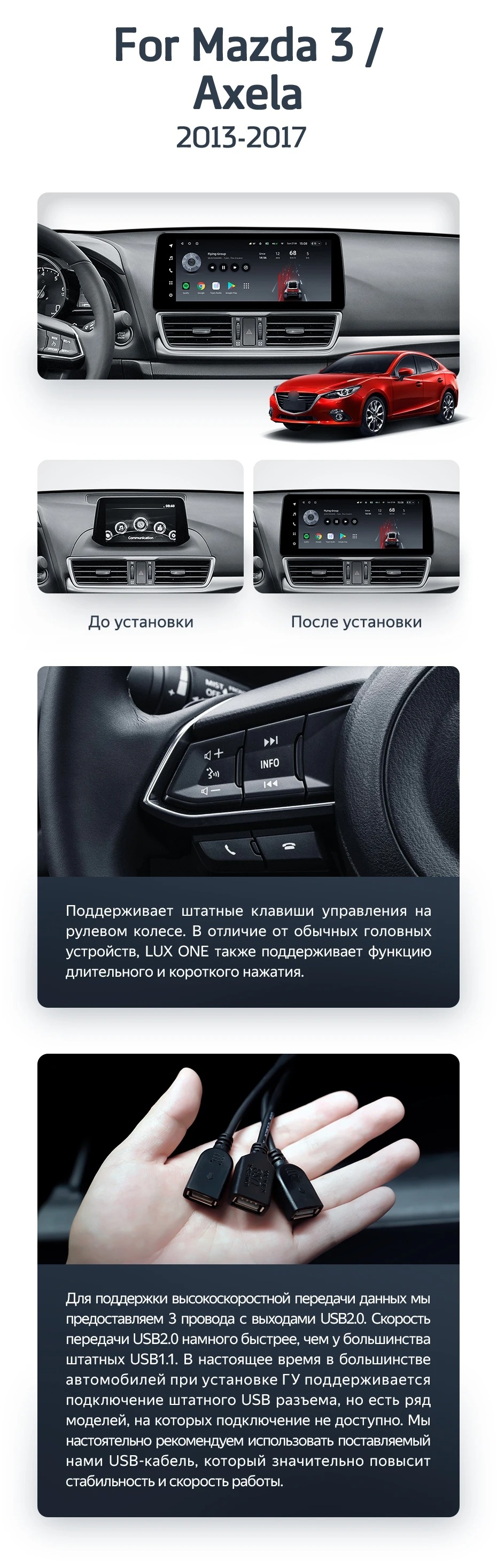 Штатная магнитола Teyes LUX ONE 6/128 Mazda 3 BM (2013-2017) Тип-A - купить всего за 47 800 руб. в интернет-магазине в Йошкар-Оле Teyes.com.ru. ✓ Самый лучший выбор мультимедиа ✓ Лучшая замена штатному ГУ ✓ Тел. +7 (800) 775-31-74