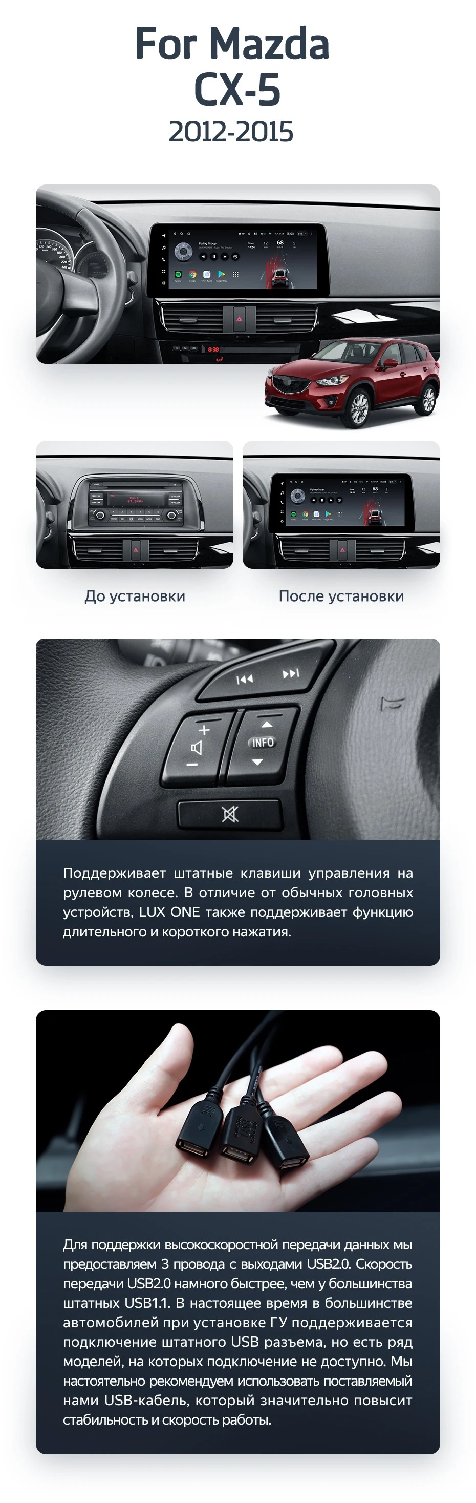 Штатная магнитола Teyes LUX ONE 6/128 Mazda CX-5 (2012-2015) Тип-C - купить всего за 50 000 руб. в интернет-магазине в Йошкар-Оле Teyes.com.ru. ✓ Самый лучший выбор мультимедиа ✓ Лучшая замена штатному ГУ ✓ Тел. +7 (800) 775-31-74