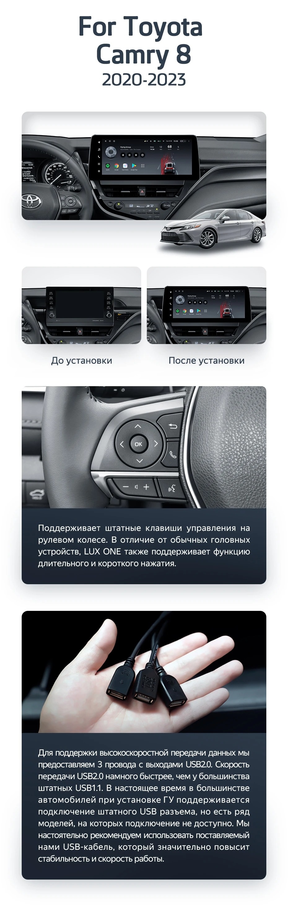 Штатная магнитола Teyes LUX ONE 6/128 Toyota Camry 8 XV70 (2020-2023) - купить всего за 48 000 руб. в интернет-магазине в Йошкар-Оле Teyes.com.ru. ✓ Самый лучший выбор мультимедиа ✓ Лучшая замена штатному ГУ ✓ Тел. +7 (800) 775-31-74