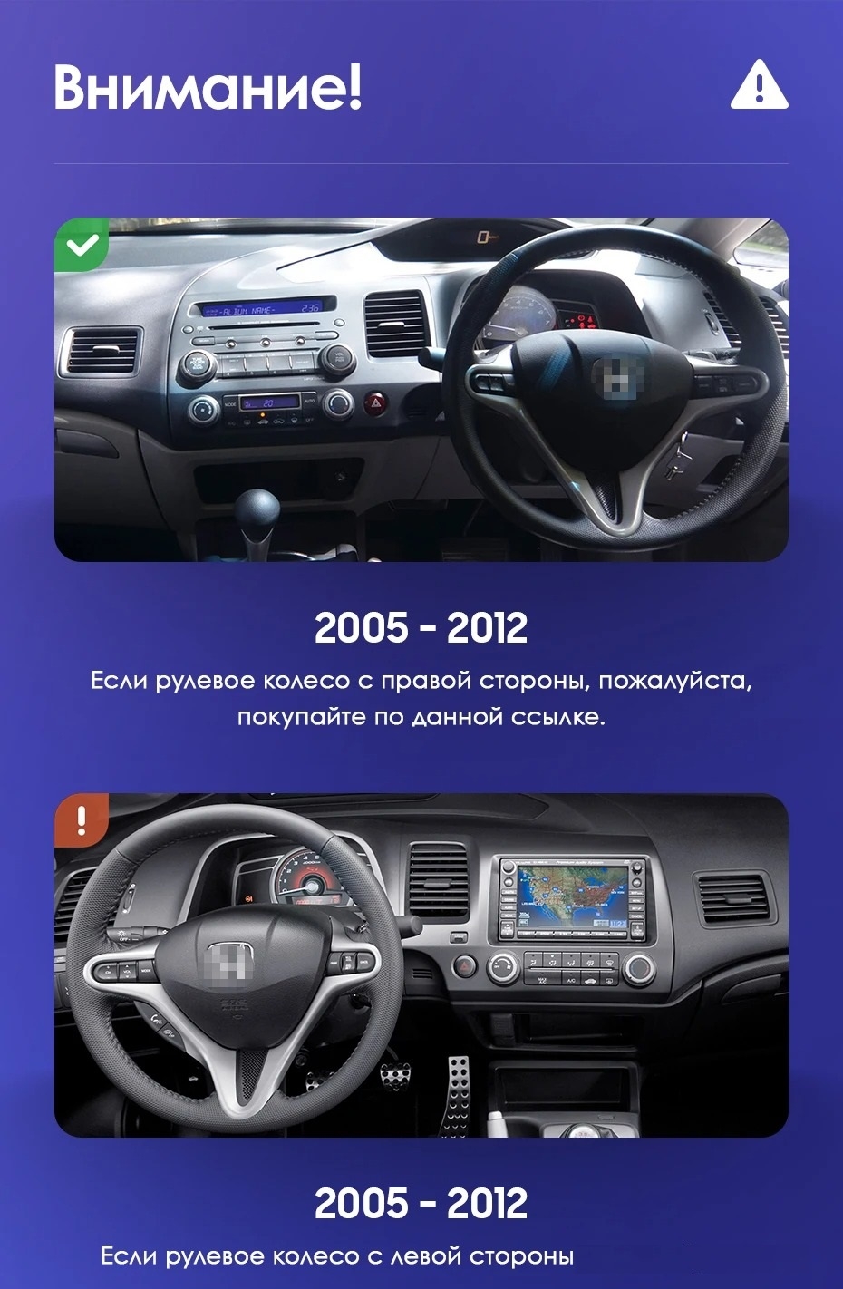 Установочный комплект для Honda Civic 8 FK FN FD (2005-2012) включает переходную рамку и проводку.