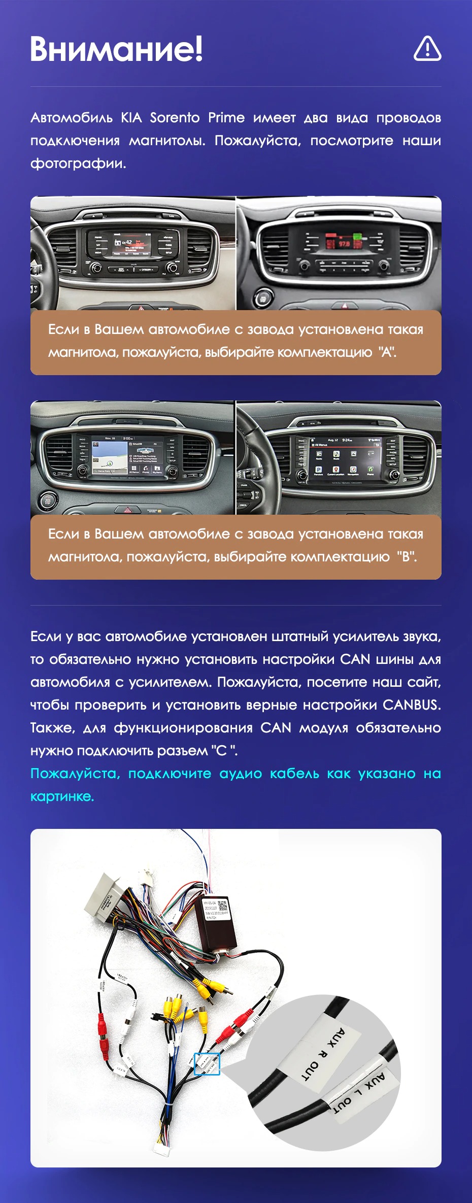 Добрый день, на киа соренто прайм 2018 г. Для установки магнитолы сс3 2к подойдет? Провода для подключения штатных usb и антены в комплекте?