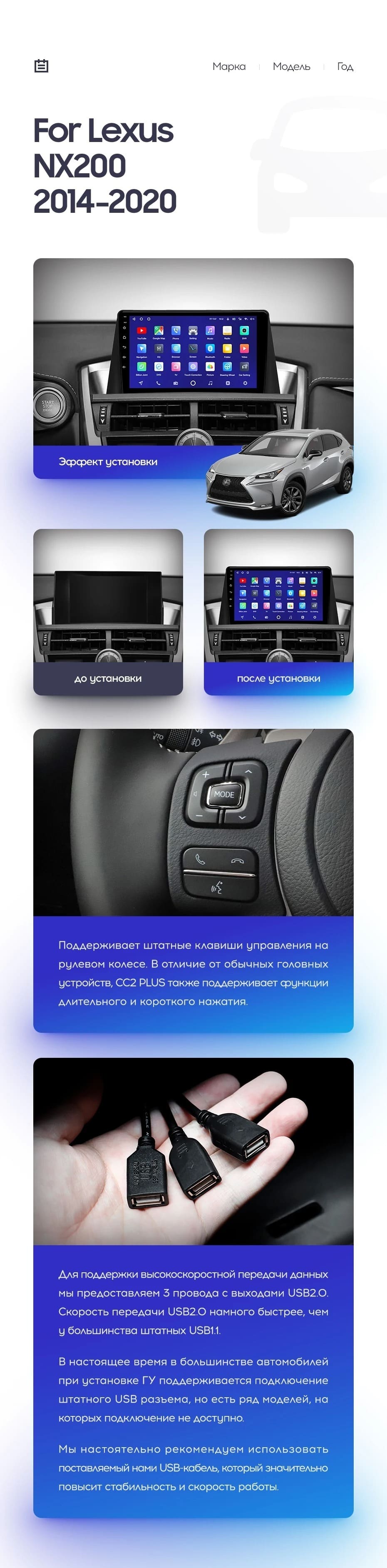 Полный комплект установки магнитолы Teyes с рамкой и проводкой можно выбрать в каталоге штатных магнитол Lexus NX200 Z10 NX 200 (2014-2020).