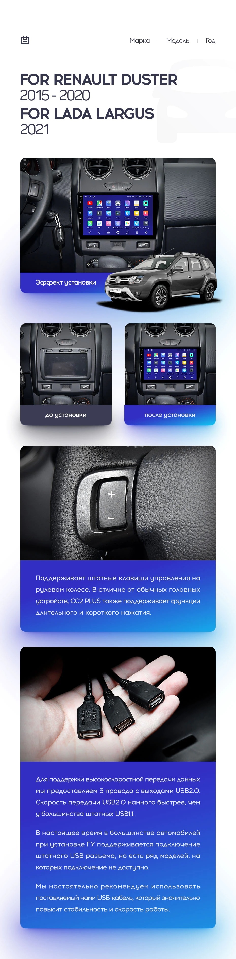 Полный комплект установки магнитолы Teyes с рамкой и проводкой можно выбрать в каталоге штатных магнитол LADA Largus 2021+.