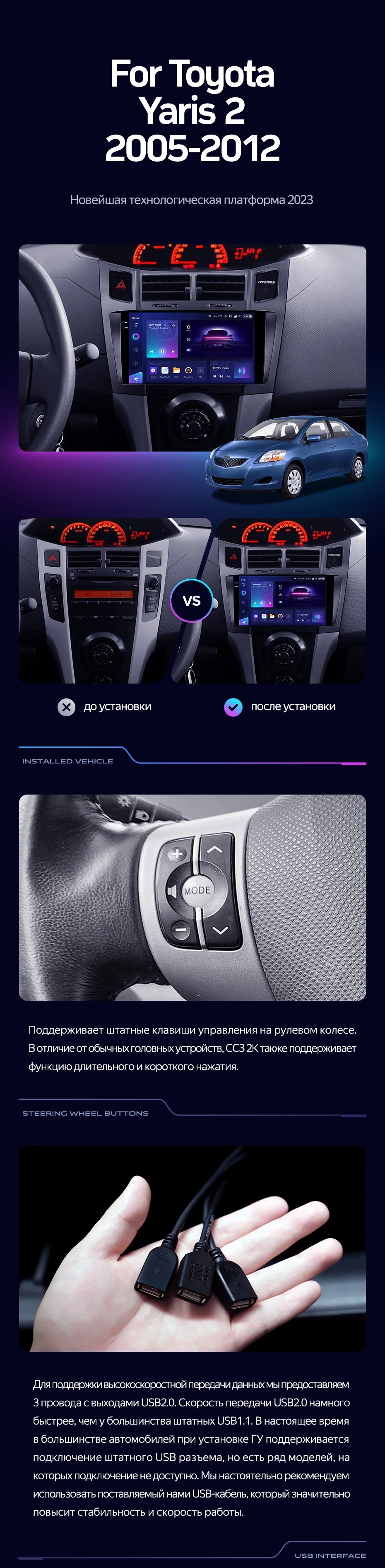 Полный комплект установки магнитолы Teyes с рамкой и проводкой можно выбрать в каталоге штатных магнитол Toyota Yaris 2 XP90 (2005-2012).